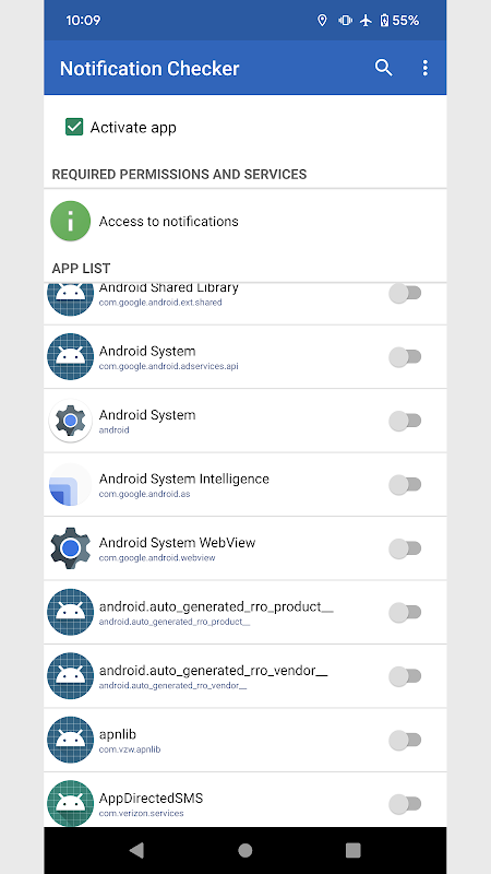 - Accesso all'elenco delle app installate (necessario per il monitoraggio delle notifiche)