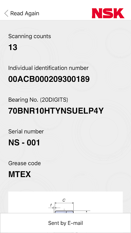 L'applicazione controlla codici a barre 2D contro il database NSK, e fornisce informazioni che possono aiutare a determinare se un prodotto è autentico. Il numero di accessi da ogni codice a barre 2D unica viene monitorato e visualizzato, consentendo ai clienti di dedurre l'autenticità del prodotto.