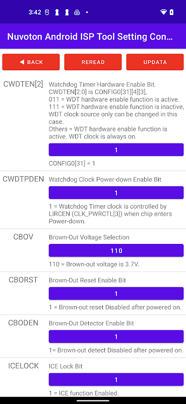 Prima di utilizzare ISPTool, l'utente deve programmare il codice ISP in LDROM utilizzando un programmatore universale o lo strumento di programmazione NuMicro® ICP di Nuvoton e il bit di configurazione utente "CBS" configurato come Boot from LDROM.