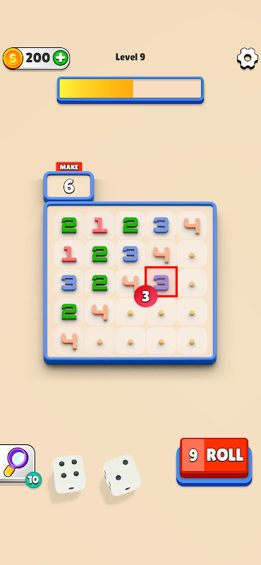 Vivi la sfida di ogni livello lanciando i dadi, selezionando i numeri e spazzando la griglia con precisione.