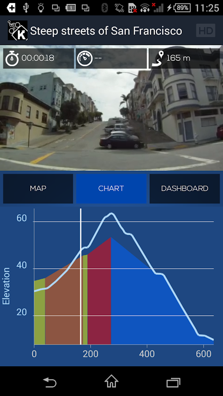 - optimized for an external display: if you have a Google Chromecast or a MHL/HDMI adapter, transfer the video, the elevation profile and dashboard to your screen and maximize the space for the map