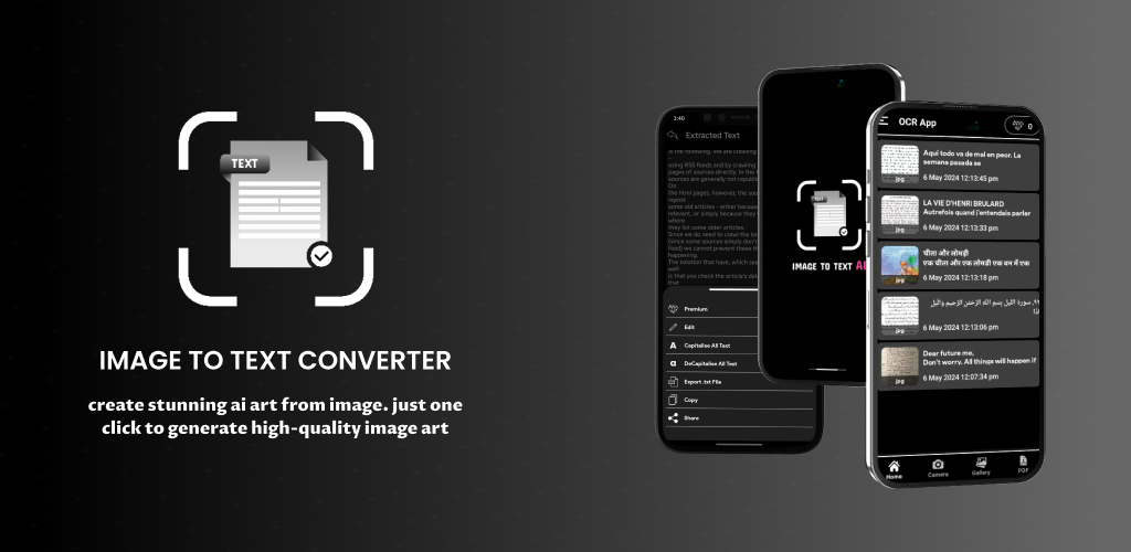 Scatena la potenza dell'estrazione del testo senza sforzo con la nostra app scanner di testo OCR all'avanguardia! Trasforma immagini e PDF in testo modificabile con un semplice tocco e prendi il controllo dei tuoi contenuti digitali come mai prima d'ora. Che tu sia uno studente, un professionista o semplicemente desideri semplificare il tuo flusso di lavoro, OCR Text Scanner è lo strumento definitivo per trasformare le informazioni visive in testo modificabile.