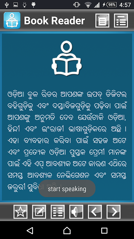 - It has Text-to-Speech support. Read Odia, Hindi and English books using TTS.