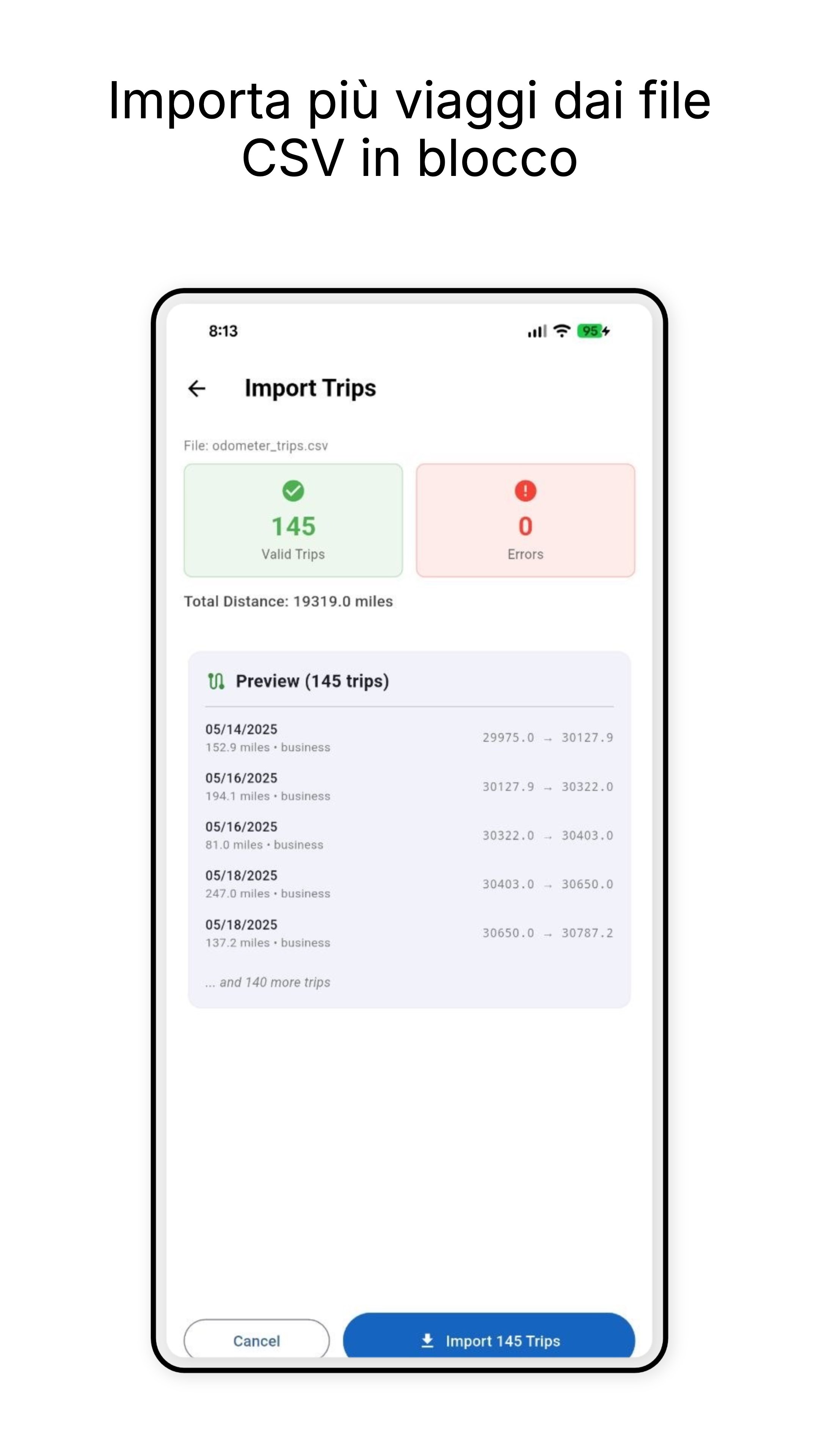 Perfetto per chi guida per lavoro e ha bisogno di registri precisi per detrazioni fiscali o rimborsi spese.