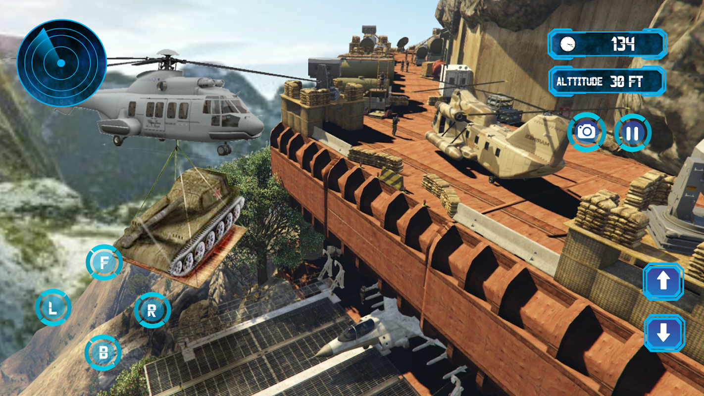 Ci sono diversi quartieri e campi di base degli eserciti, dovete trovarli e devi volare da un campo all'altro per il salvataggio degli ostaggi e anche dare tutte le armi militari necessarie e la pistola in polvere e tutti questi tipi di armi da fuoco armate a Loro sul vostro simulatore elicotteri. Alcuni siti del basecamp dell'esercito saranno situati su montagne e deserti collinari, mostreranno le tue abilità nel gestire gli elicotteri pesanti di cobra f18 e f16 e portare con sé la cabina di guida. Questo dovere è dato perchè sei il soldato dell'esercito di combattimento frontale e un guerriero di furia nella tua squadra, per cui è stata assegnata questa missione gratuita di volo in elicottero.
