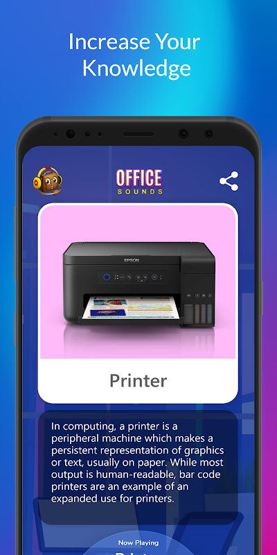 Missing your cozy fun filled office and its buddies? Worry no more! Office Sounds app will bring the office to your home to create a virtual office with all the familiar office noises in one app. You will no more miss the vending machine sound which gives you your favorite coffee or the tea. The rushing keyboard typing sound will create the urgency even if you are all alone and will make you feel like you are surrounded with your energetic colleagues. The call bell which you get triggered always when you are at your desk or the service bell which makes you excited about the break or an important notice, will always recreate the best virtual office environment within the comforts of your own room. Switch your mood from home to office just by a click on your favorite office noise through this Office Sounds app.