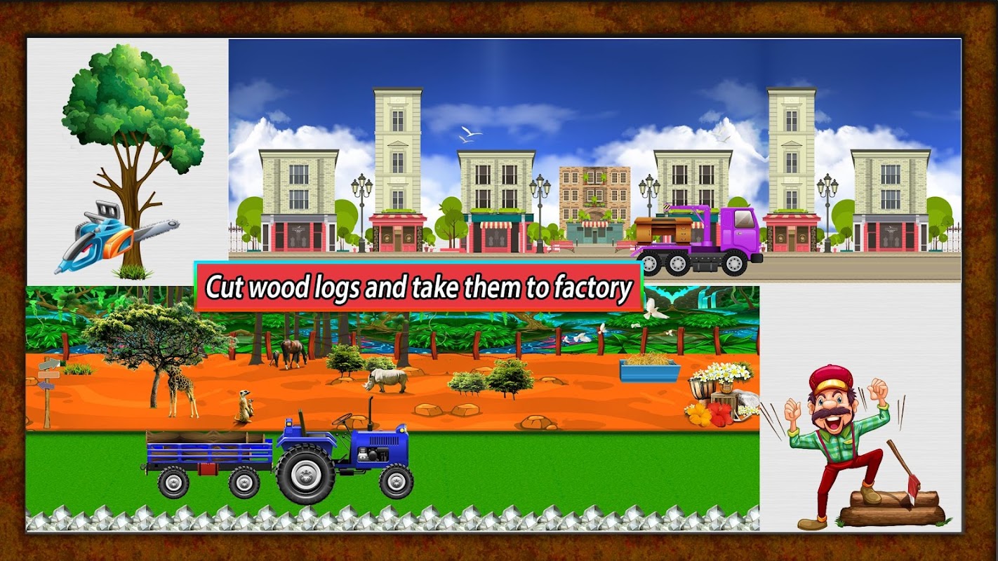Passare i tronchi di legno attraverso diverse macchine e attrezzature per fare fogli di legno. Primo lavoro come un simulatore vero carpentiere e tagliare il legno in lastre di legno sottile. Adesso bilanciate le lastre e passate le lastre di legno al dipartimento di montaggio e progettazione.