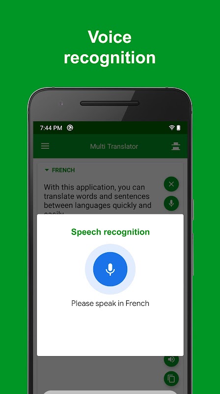 Questa app di traduzione ti aiuterà a cercare come un dizionario oa tradurre parole e frasi in modo rapido, comodo e semplice. Ti aiuta anche a inserire il testo rapidamente con la funzione di riconoscimento vocale e ti aiuta ad ascoltare il testo tradotto con la funzione di trasmissione vocale. È totalmente gratuito e puoi usarlo per tradurre anche offline.