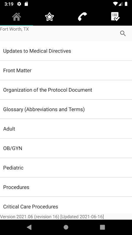 I protocolli OMD forniscono un rapido accesso offline ai protocolli e ai materiali di supporto dell'Ufficio del direttore medico per Fort Worth (TX).