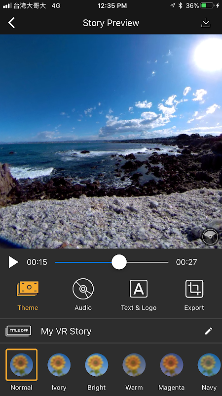 (5) Integrazione e modificare i video e le foto VR come una storia di video VR, quindi condividere ai social media.