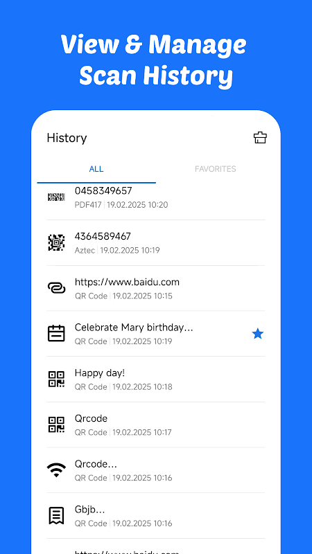 ✅ Visualizza la cronologia delle scansioni: non perdere mai i codici scansionati e accedi ad essi in qualsiasi momento!