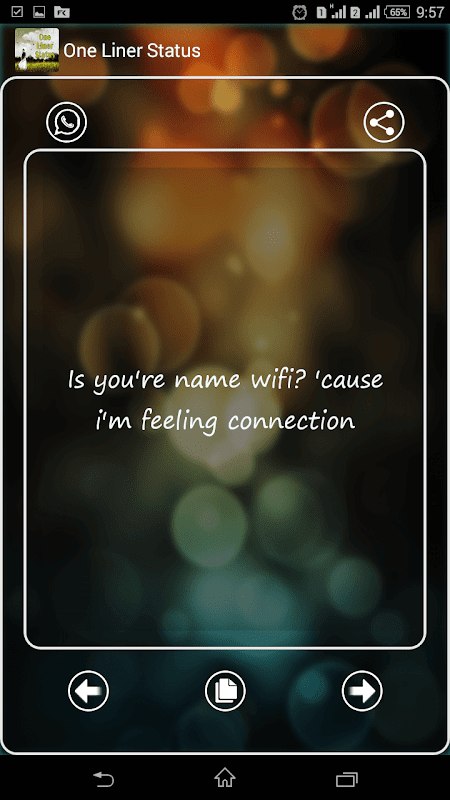 This app for Hindi English Status Messages Lover. You can share various one liner short status feeling with girlfriend,boy , loved one etc and shared to friends.These app contains short messages in english as well as Hindi .In future Sms,jokes features will be added.