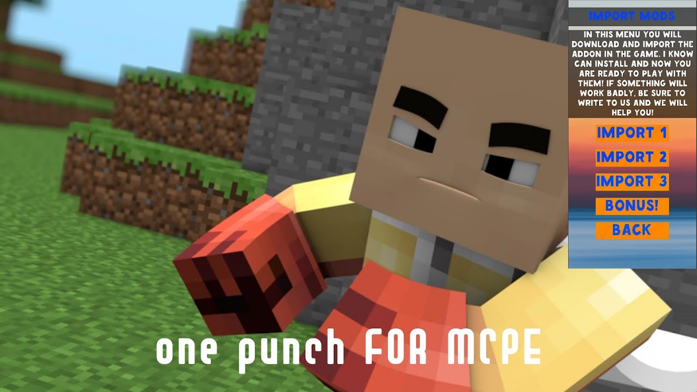 😀If you are tired of the regular version of Minecraft and want to diversify the gameplay, you can install one of our modifications. This is what we talked about above. But this will not be the usual addition that adds fabulous animals, new locations or props, but unique mods. You can download the always updated One Punch Mod for Minecraft Pocket Edition 2022!🤣😀