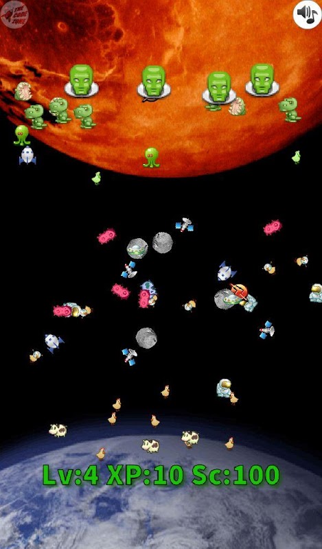 The martian Head Honcho has launched an all-out attack on the Earth! Can you, a humble space cadet, make it through the martian armies of ships, aliens, and giant floating heads and destroy the Martian Head Honcho before he destroys the Earth?