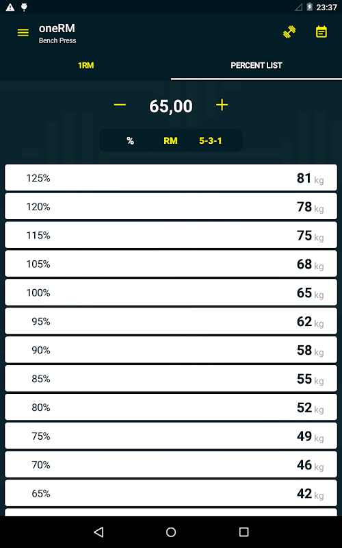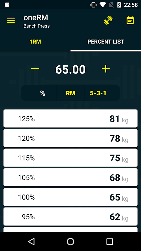 oneRM ti aiuta a calcolare il 1 ripetizione massima (1RM). 5-3-1 Lista Wendler