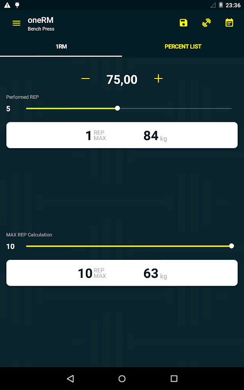 oneRM helps you to calculate your 1 Repetition Maximum from 2-20 max effort performed Repetitions. It uses most common formulas to estimate your 1RM.
