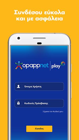 To opappnet|play είναι μία γρήγορη, εύχρηστη και ασφαλής εφαρμογή για τους συνεργάτες του ΟΠΑΠ. Ειδικά σχεδιασμένη για συσκευές Android, το opappnet|play σας ενημερώνει για τις αρχές του Υπεύθυνου Παιχνιδιού και σας προσφέρει πληροφορίες για όλα τα υπάρχοντα και νέα παιχνίδια του χαρτοφυλακίου μας.