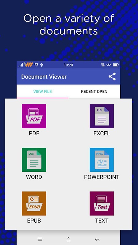 This open file word – docx reader, pdf reader is a clever HD quality MS word reader which can easily view all images, tables, different font styles, bullets and more for any document file in a responsive display for mobiles as well as tablets. Its not just a basic docx reader it can do more.