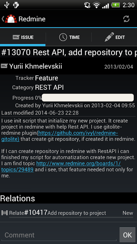 * Beta sarebbe stato rilasciato su https://play.google.com/apps/testing/jp.redmine.redmineclient.