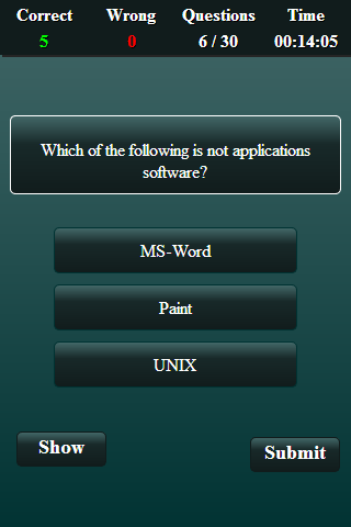 The application is very easy to use and has been designed very carefully keeping in mind the needs of the students. When a student/user makes a mistake the application indicates and also shows the correct answer. Take the Operating System tests repeatedly and analyze your improved results each time.