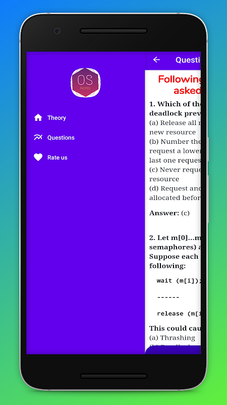 An operating system (OS) is the program or software that, after being initially loaded into the computer by a boot program and manages all the other programs in a computer. The other programs are called applications or application programs or application softwares. The application programs make use of the operating system OS by making requests for services through a defined application program interface (API) and web services. In addition, users can interact directly with the operating system through a user interface , the UI screen such as the command line or a graphical user interface (GUI).This App has been prepared for the computer science graduates to help them to clearly understand the basic to advanced concepts related to Operating System in depth.