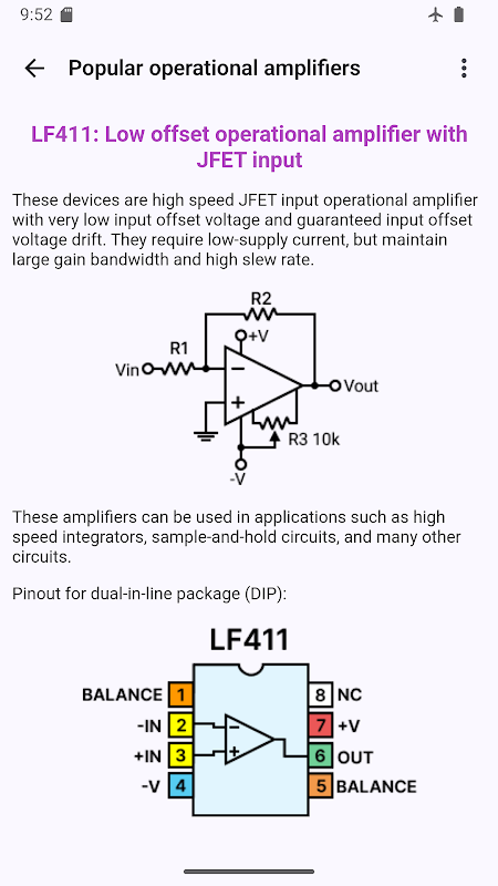 L'applicazione per la progettazione e il calcolo di circuiti elettronici utilizzando amplificatori operazionali sarà utile per ingegneri elettronici, studenti e appassionati di elettronica, sia principianti che esperti. Questo programma può essere utilizzato come guida durante la creazione di vari circuiti elettronici, progetti e prototipi. Inoltre, l'app contiene dati di riferimento su serie popolari di amplificatori operazionali e comparatori.