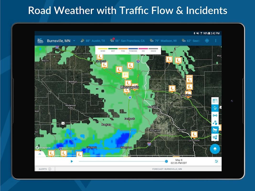 Designed for professional on-the-go, the Weather Company Operations Dashboard is a mobile platform upon which we tailor industry-specific decision support tools.