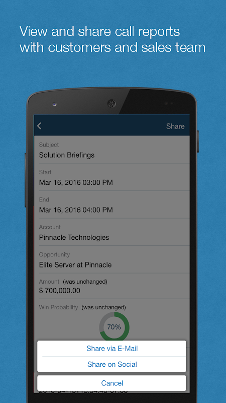 Oracle Sales Cloud Call Report app is a single purpose app that enables sales rep to perform critical and frequent tasks in a minute or less. With Call Report app, you can: