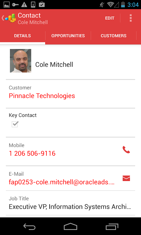 Oracle Sales Cloud Mobile provides real-time and secure access to your key CRM data from Oracle Sales Cloud. Access most critical sales information, such as accounts, contacts, calendar, tasks, opportunities, leads, notes, and interactions right on Android smart phones and tablets.