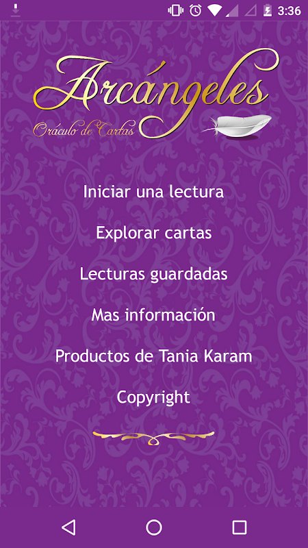 Aplicación oficial de Tania Karam para la visualización de lecturas con base a cartas de ángeles