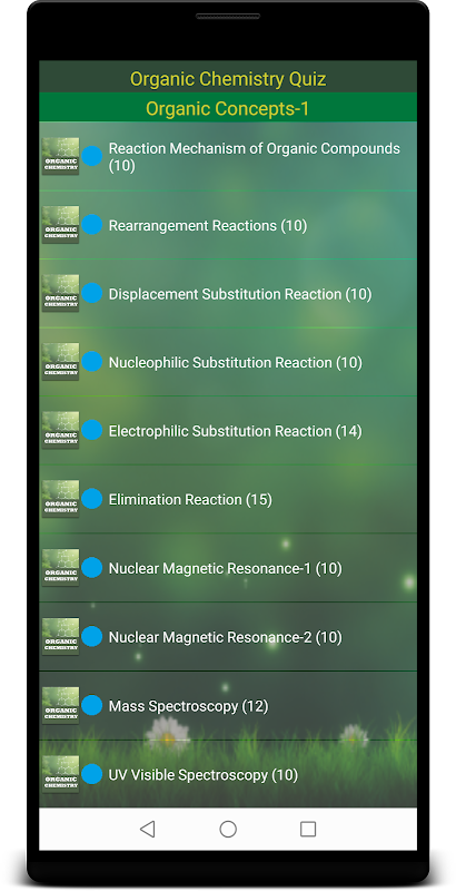 Le app Quiz di chimica organica sono un concetto innovativo di Sana Edutech che fornisce materiali didattici su app Android in un'interfaccia utente veloce e piacevole.