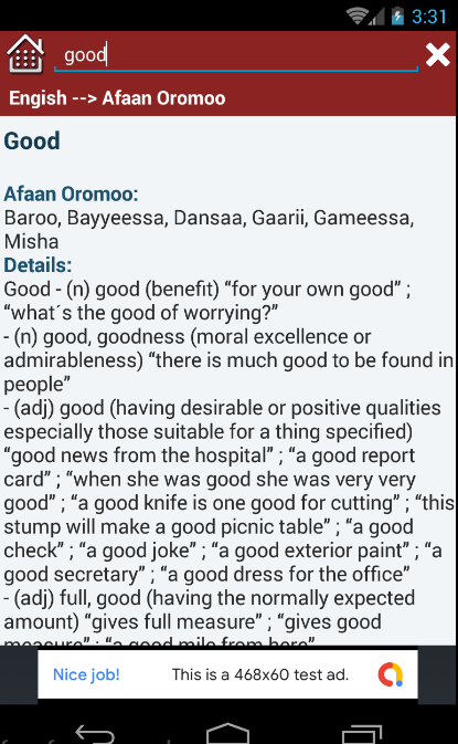 Studiare e imparare l'inglese e le lingue afaan oromoo utilizzando la nostra app dizionario offline da afaan oromoo a inglese e da inglese a afaan oromoo.