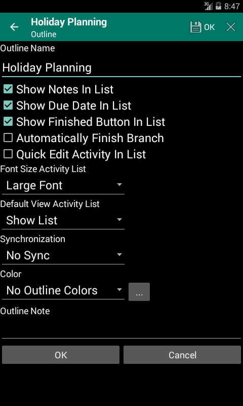 Organizza idee, attività, liste di cose da fare, liste della spesa, e tutti i tipi di note. E' inoltre possibile utilizzare Outliner come strumento di gestione di progetti.