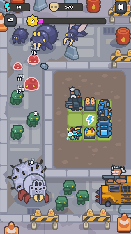 Un gruppo di sopravvissuti è sotto attacco e solo tattiche intelligenti possono tenerli in vita. In questo intenso gioco di strategia di difesa della torre, devi unire le unità per renderle più forti, posizionarle saggiamente per ottenere bonus e combattere ondate di nemici mortali e potenti boss. Ogni livello porta con sé nuove sfide: riuscirai ad adattarti e a sopravvivere?