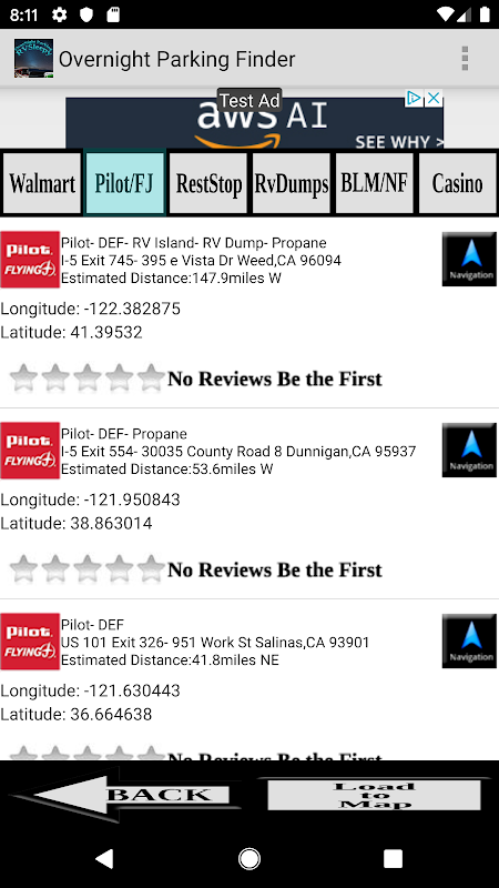 Fixed error causing all Walmarts to show up as no overnight parking. Keep with us much more to come.