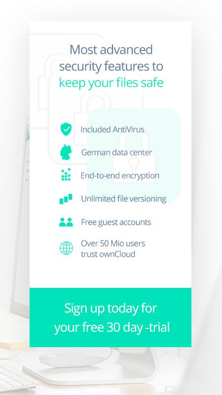 Ottieni una prova gratuita di 30 giorni ora: https://owncloud.online/free-trial