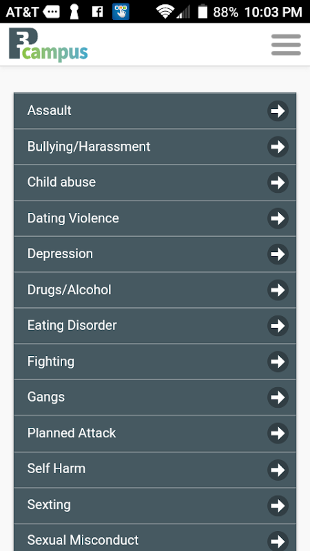 L'applicazione P3 Campus è una tecnologia di sicurezza della scuola che permette agli studenti, genitori e membri della comunità a presentare problemi di sicurezza sicuro e anonimo al modello di prevenzione strategica. Intel sicuro, dialogo a due vie in corso, e di immagine e caricare video caratteristiche inviati a un live punto 24/7 segreteria consentono agli amministratori della scuola e le forze dell'ordine per ricevere le informazioni più accurate al fine di creare interventi efficaci e prevenire la violenza e tragedie. La tecnologia Campus P3 consente inoltre di chat in tempo reale anonimo e notifiche push tra le forze dell'ordine, i funzionari della scuola, e quello che effettua la segnalazione per promuovere la collaborazione, la comunicazione e la responsabilità.