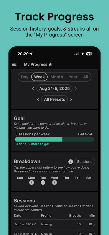 L'app non è destinata a diagnosticare, trattare o prevenire condizioni mediche. Consultare un medico prima di iniziare una pratica di respirazione, soprattutto in caso di patologie preesistenti.