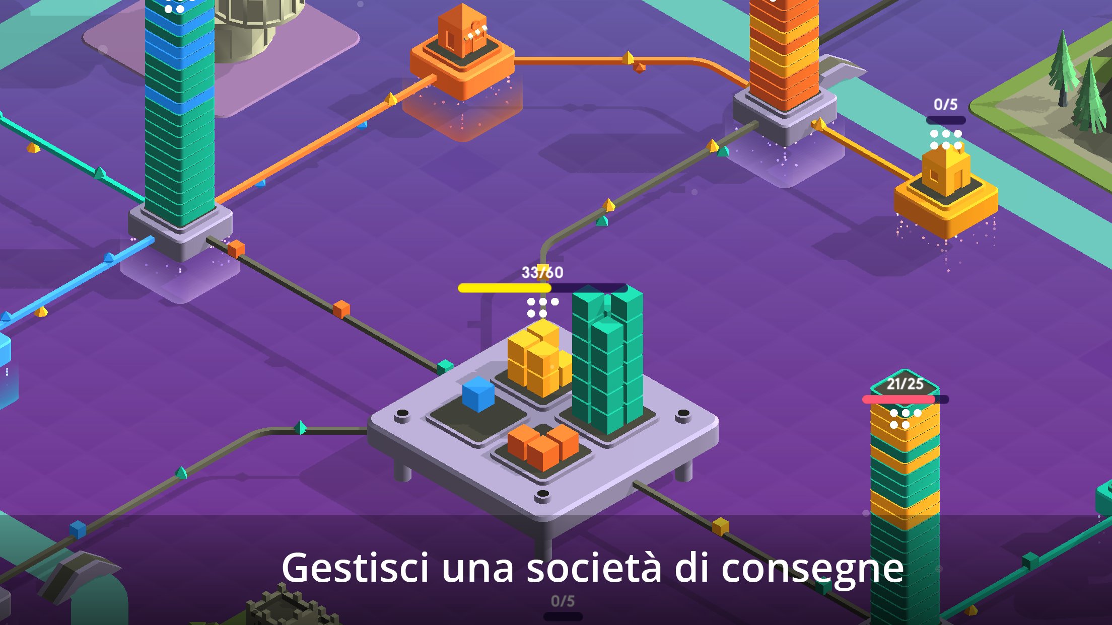 Man mano che nuovi hub diventano attivi e la domanda aumenta, puoi riprogettare la posizione degli edifici per mantenere il processo di consegna dei pacchi il più fluido ed efficiente possibile. Velocità e capacità di stoccaggio sono anche essenziali per mantenere la rete di consegna senza inconvenienti. Quanto tempo riuscirai a mantenere gli ordini in movimento?