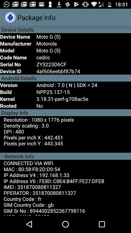 5.Informazioni sulla rete (WiFi MAC, IP v4, indirizzo IP V6, codice paese, IMEI, numero seriale SIM, MCC, MNC)