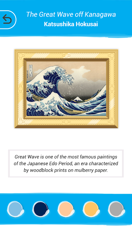 "Palette" simula l'eterna lotta di ogni artista: trovare il colore giusto. Mescolare insieme diversi colori dalla tavolozza per abbinare i colori di dipinti famosi. La corrispondenza di tutti i colori target rivela il famoso dipinto e un fatto storico artistico. La tavolozza offre agli artisti la possibilità di esplorare i colori di miscelazione senza sprecare alcuna pittura!