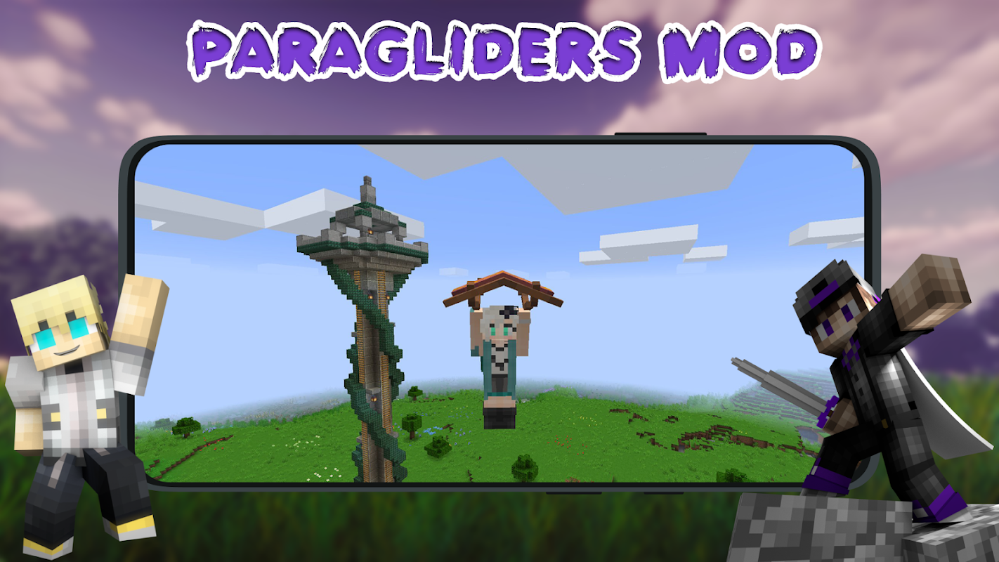 Ami gli sport estremi o hai bisogno di avventure? O forse sei un fan dei videogiochi giapponesi? Vorresti aggiungere qualcosa di nuovo al tuo gioco MCPE? Allora il nostro Paragliders Mod per Minecraft PE è quello che stai cercando. Questo componente aggiuntivo aggiunge Paragliders, che espande le possibilità del gioco e lo rende più divertente.