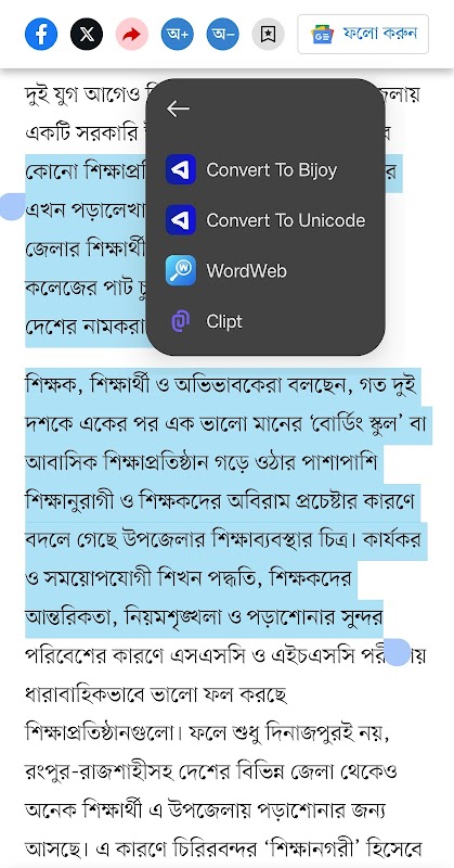 * Esperienza di digitazione bengalese simile a quella di un computer utilizzando Avro e Unibijoy. * Per Avro, seguono le stesse regole di formazione, senza alcuna differenza tra l'implementazione su computer e quella su dispositivi mobili.