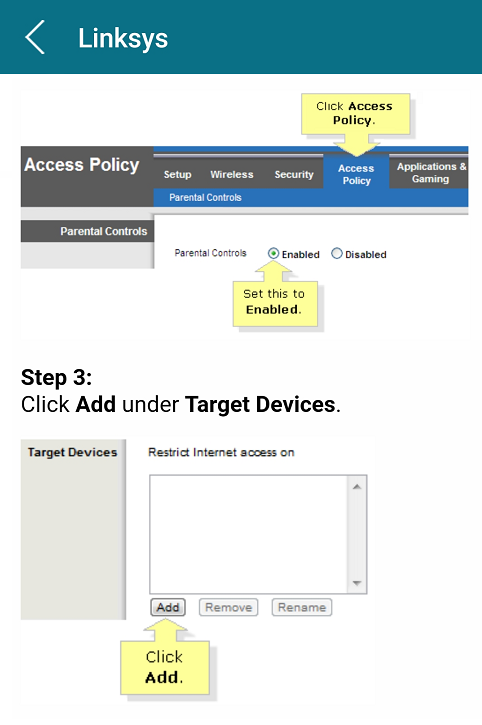 Altri marchi di router hanno spiegato come viene utilizzato il controllo parentale nei contenuti delle applicazioni mobili: Asus, Belkin, Huawei, Hitron, Motorola, Netgear, Tenda, Zyxel, Linksys, Tp link, trendnet