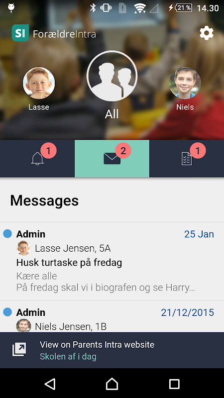 With this app you get an overview of news and messages in ForældreIntra as soon as they are sent.