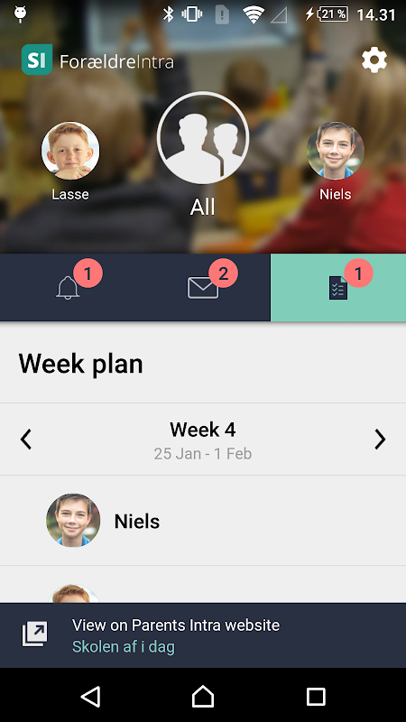 From the app you are automatically logged on to the ForældreIntra website when you need to access features that are not in the app.