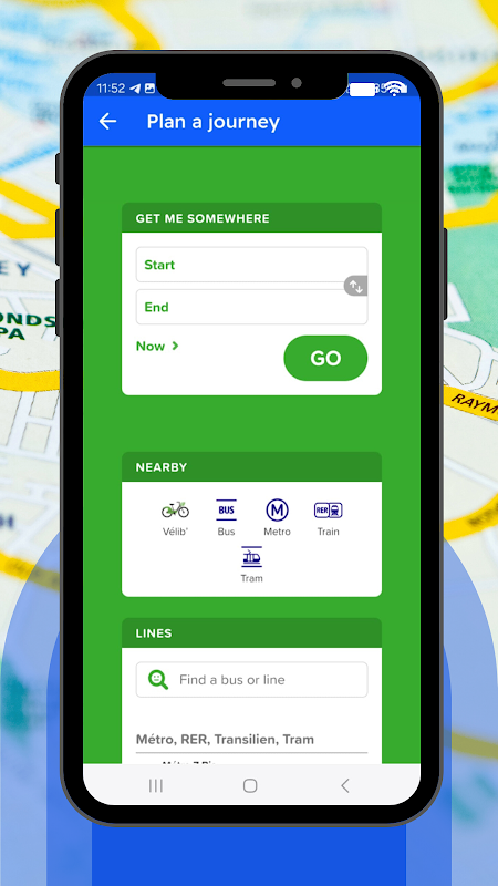 Pianifica percorsi senza interruzioni su tutti i mezzi di trasporto di Parigi, inclusi metropolitana, RER e tram, con indicazioni e tempi di percorrenza precisi.