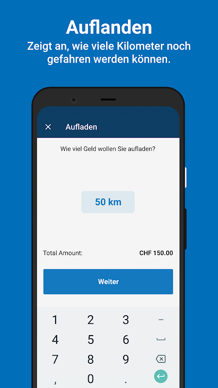 Con l'app PARK & CHARGE hai accesso in ogni momento alle ricariche effettuate e ai costi conseguenti. Il credito prepagato viene caricato velocemente e direttamente tramite Twint, Google Pay o carta di credito.