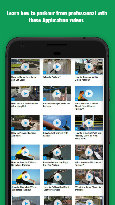 In questa applicazione troverai lezioni di parkour gratuite, tutorial e altre fantastiche risorse di parkour.