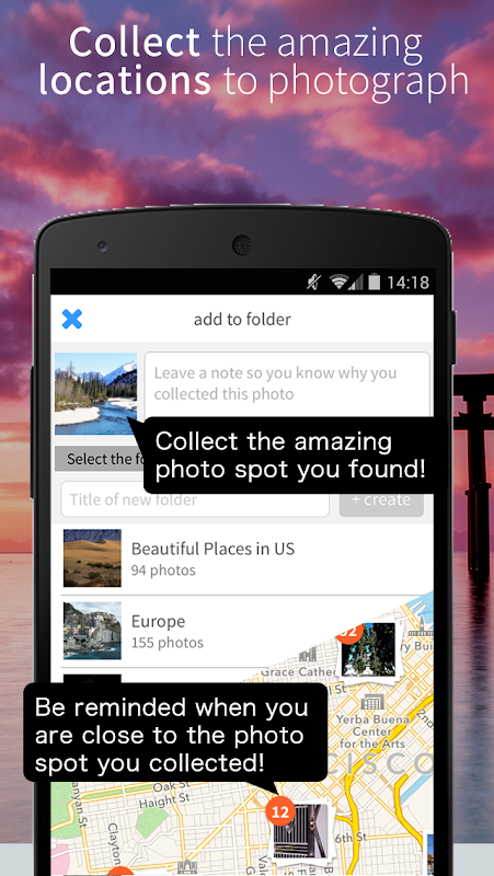Search landmarks and your next destination to travel and discover great locations to take photographs. You also can see photo locations around you by using “Nearby”